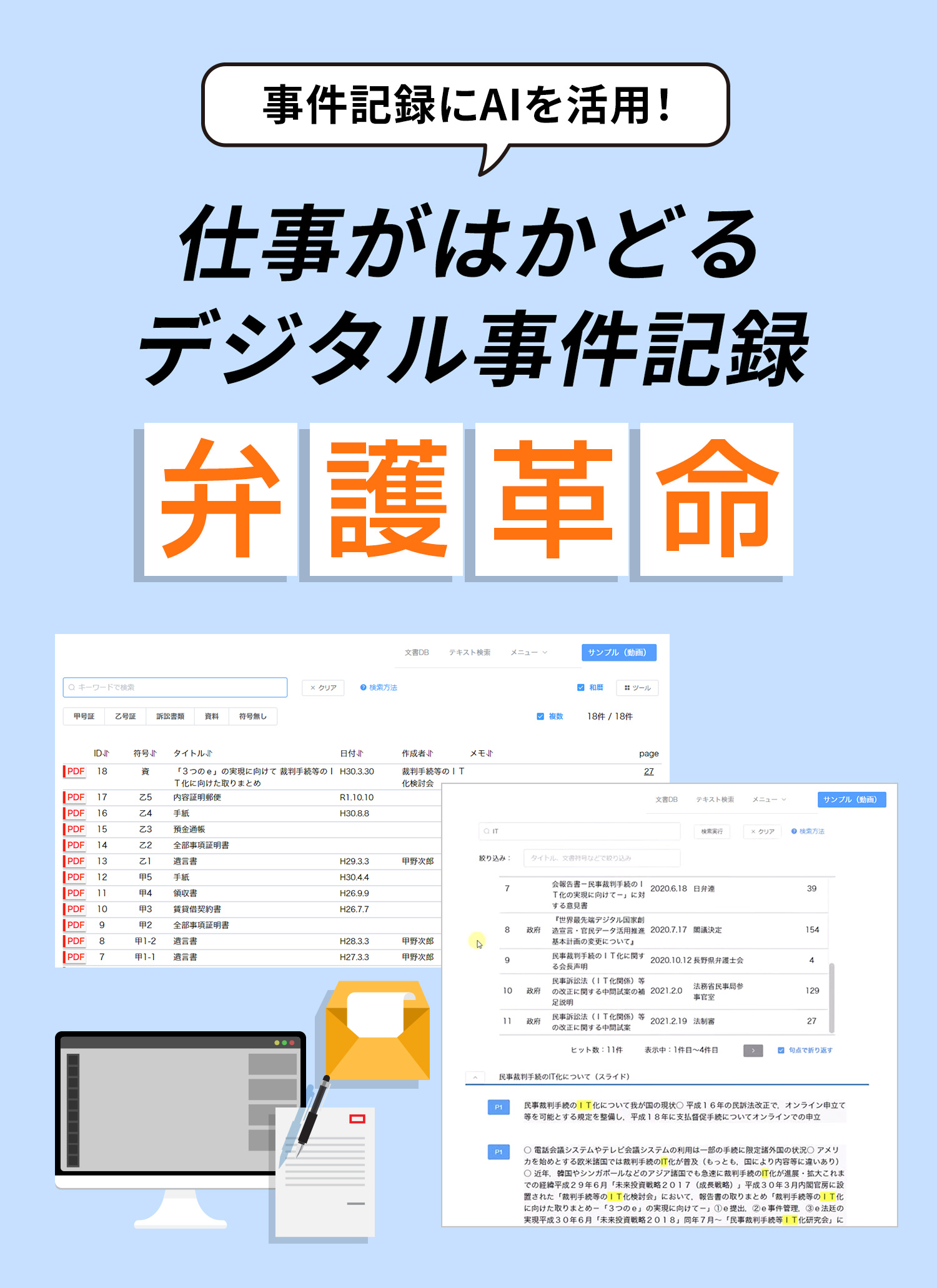 紙やフォルダの限界を克服した弁護革命。デジタルに一元化するために、ぜひお試しください。